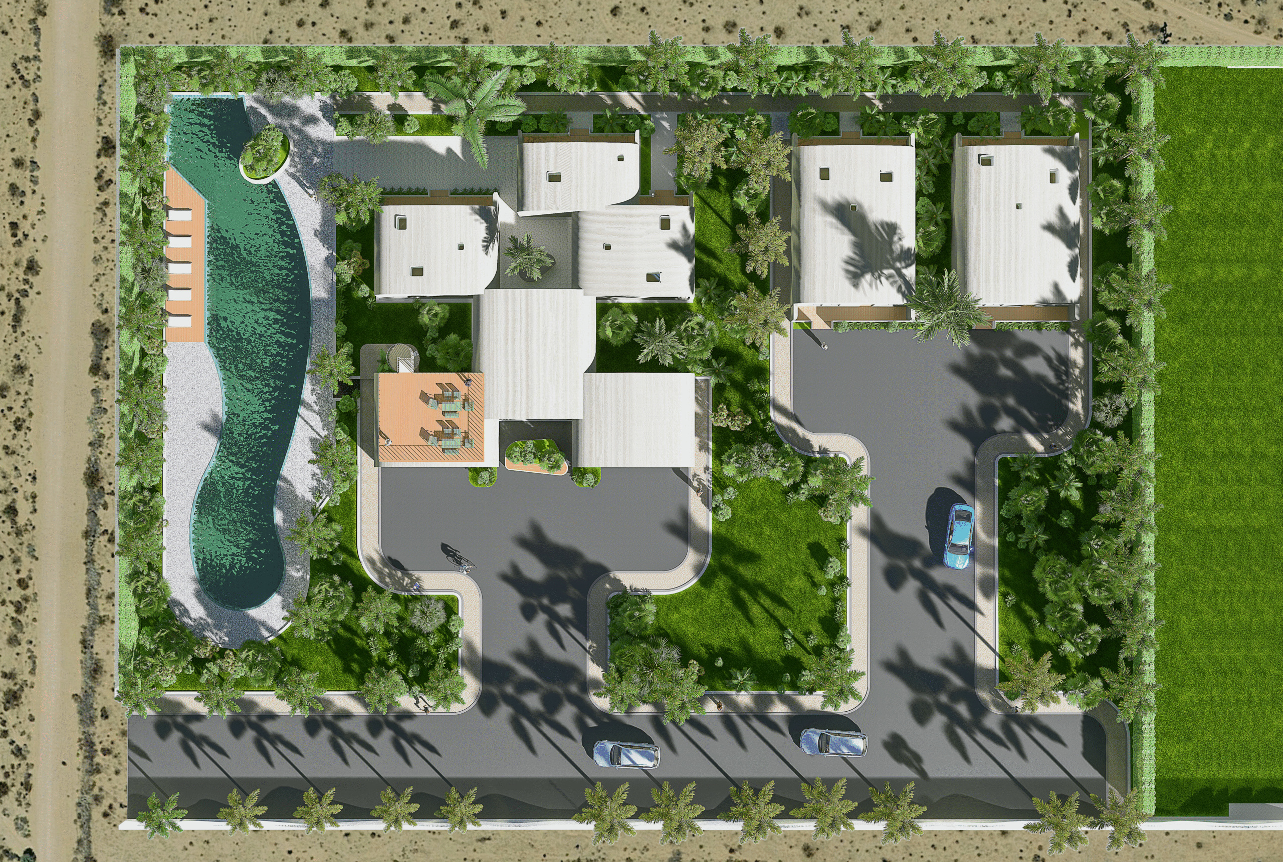 Due to complete in 2026, Gaudi are currently developing a complex including vacation rentals and an exhibition space in Joshua Tree CA,